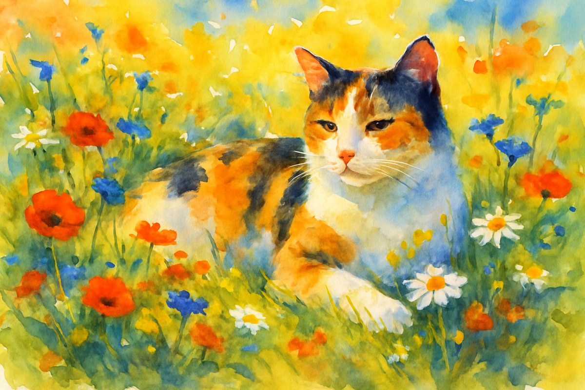 ![]() Calico Meadow | Purr-Auguste Renoir | landscapes | Watercolor on Paper | $1,550 | $199 | 2023 | |